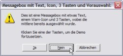 Hier jetzt der komplette Aufruf für die im nebenstehenden Bild gezeigt Dialogbox im Vordergrund: