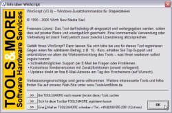 | Zweck | Dialog zur Eingabe eines Pfades über einen Verzeichnisbaum | Info zeigt den Info-Dialog von Winscript XP an. Er enthält Infos über die Programmversion und Links zu eventuellen Updates des Tools. | |
