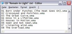 Wenn Sie sich öfter mit der Dokumentation von z.B. Musik- oder Archivdateien befassen müssen, dann kennen Sie sicher das Problem, dass man nur mit allerlei Tricks an die Namen der zu beschreibenden Dateien herankommt - und wer will diese schon immer wieder per Hand eingeben? Mit Dir-it benötigen Sie dagegen nur ein paar Mausklicks.