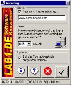 Sparen, sparen, sparen! Damit die kleinen und großen Stopps beim Surfen nicht zu teuer werden, bietet Windows das so genannte "automatische Auflegen nach Ablauf der Leerlaufzeit". Doch wenn man bsw. gerade Buchungen per Online-Banking vornimmt, kann durch die langsamen Bank-Server die Internetverbindung wegsterben. Grund? Die Leerlaufzeit ist abgelaufen und Windows hat artig die Leitung gekappt. Eine zeitweilige Deaktivierung wäre also angebracht. Doch deswegen immer wieder in der Systemsteuerung herumklicken? Nicht nötig, denn das Tools&More-Utility AutoPing übernimmt diese Aufgabe per simplem Mausklick. [weiter] |