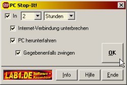 Sie müssen dringend weg, haben aber noch einen längeren Download laufen? Wer jetzt den Ladevorgang abbricht (und keine Flatrate hat) wirft bares Geld aus dem Fenster! Doch den PC einfach weiterlaufen zu lassen ist auch keine gute Idee: Die Verbindung würde sicher weitaus länger offen gehalten werden, als eigentlich nötig - wodurch Sie wiederum Gebühren verschenken würden. Also was tun? Eine kompakte Lösung für diese Zwickmühle bietet das Tools&More-Utility PC Stop-It! [weiter]